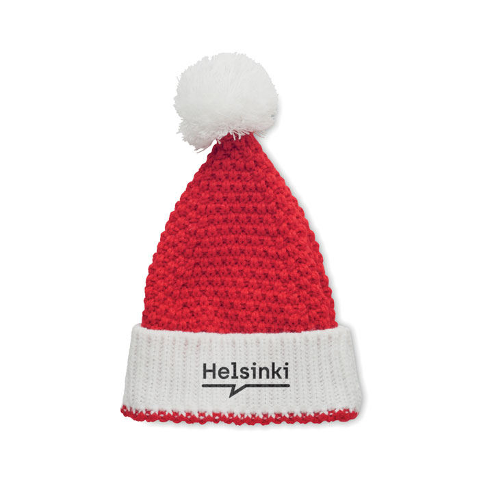 Vánoční pletená čepice. Vánoční pletená čepice měkkého RPET polyesteru, s lemem a bambulí.