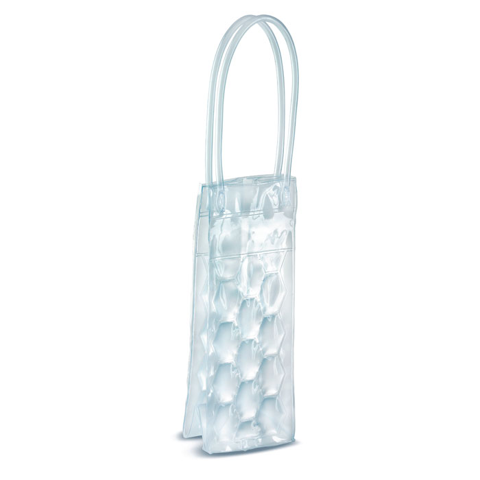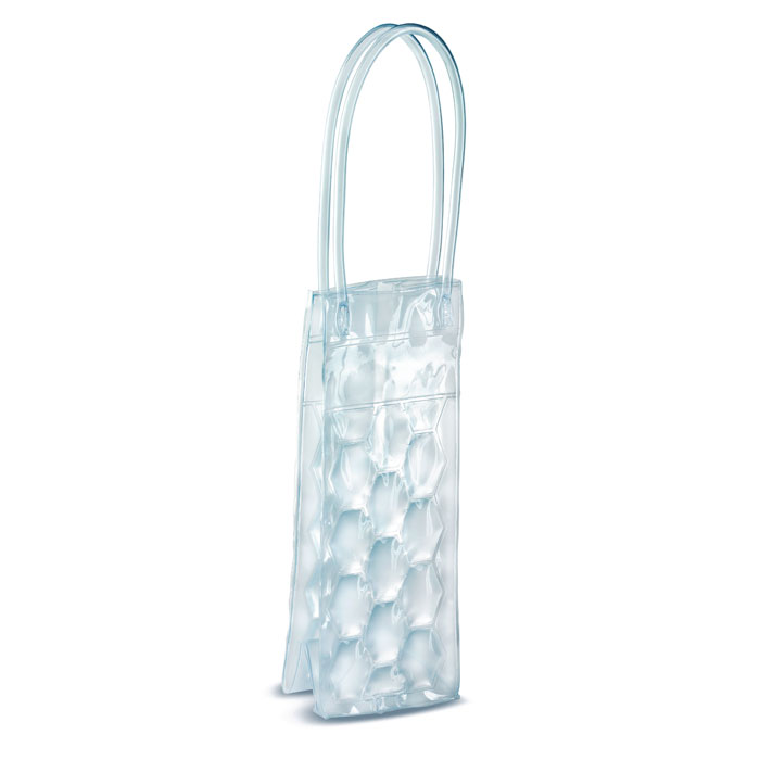 Průhledná chladicí reklamní taška na lahev. Chladicí obal s vlastním potiskem z průhledného PVC. Po ochlazení v mrazáku udrží lahev chladnou.