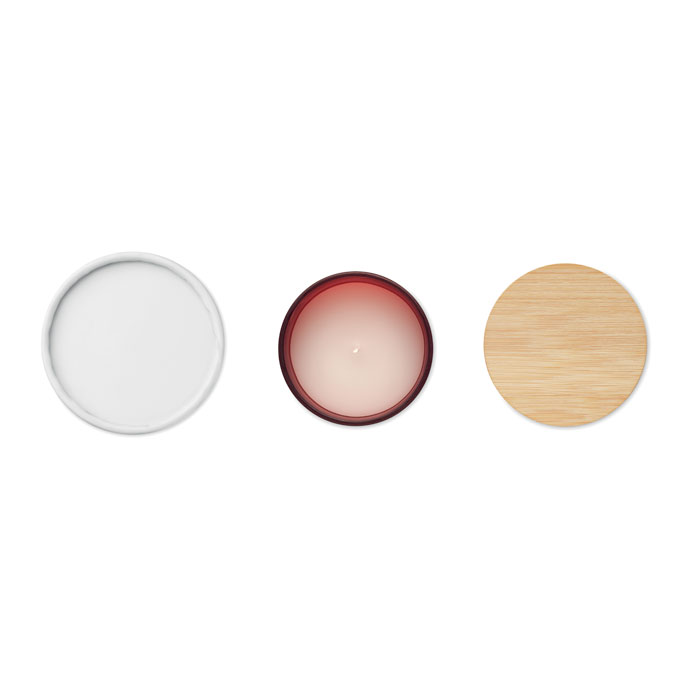 Vonná svíčka na rostlinné bázi v matném skleněném svícnu s bambusovým víčkem. 120 gr. Doba hoření: cca 46 hodin. Dodáváno v dárkovém papírovém tubusu. Odpočiňte si doma a vytvořte si lázeňský pocit s těmito svíčkami s přírodními vosky. Tyto vůně vytvoří relaxační prostředí, což z nich dělá vděčný a vždy vítaný dárek. Svíčky jsou vyráběny v následujících variantách vůní (každá varianta má svůj vlastní kód): santalové dřevo (03), skořice (02), vanilka (06) a jasmín (09).