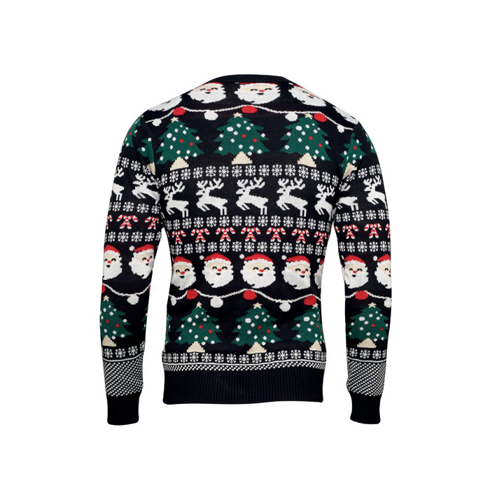 Reklamní vánoční svetr z akrylu s 10 LED světly. Velikost: S/M. Ukažte se v práci nebo na rodinné štědrovečerní večeři stylově v tomto svátečním svetru. Vyjímatelná přihrádka na baterie. Součástí balení jsou 2 baterie CR2032.